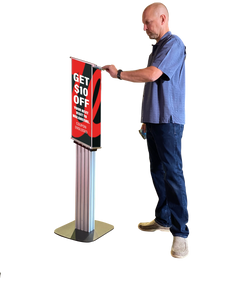 A sponsor can add a brochure holder to the dispenser and hand out information on their product or service.